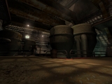 kamera sníma scénu z miesta, kde sa ocitne hráč, ak príde z Boiler Room (bude