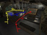 steny, ktorá je tesne za pravým okrajom obrázku. Bežíte od výťahu, naskočíte
