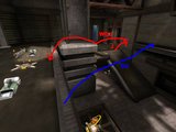 Modrý skok znázorňuje jednoduchý DJ od minigunu na úzku rímsu naproti. Takéto